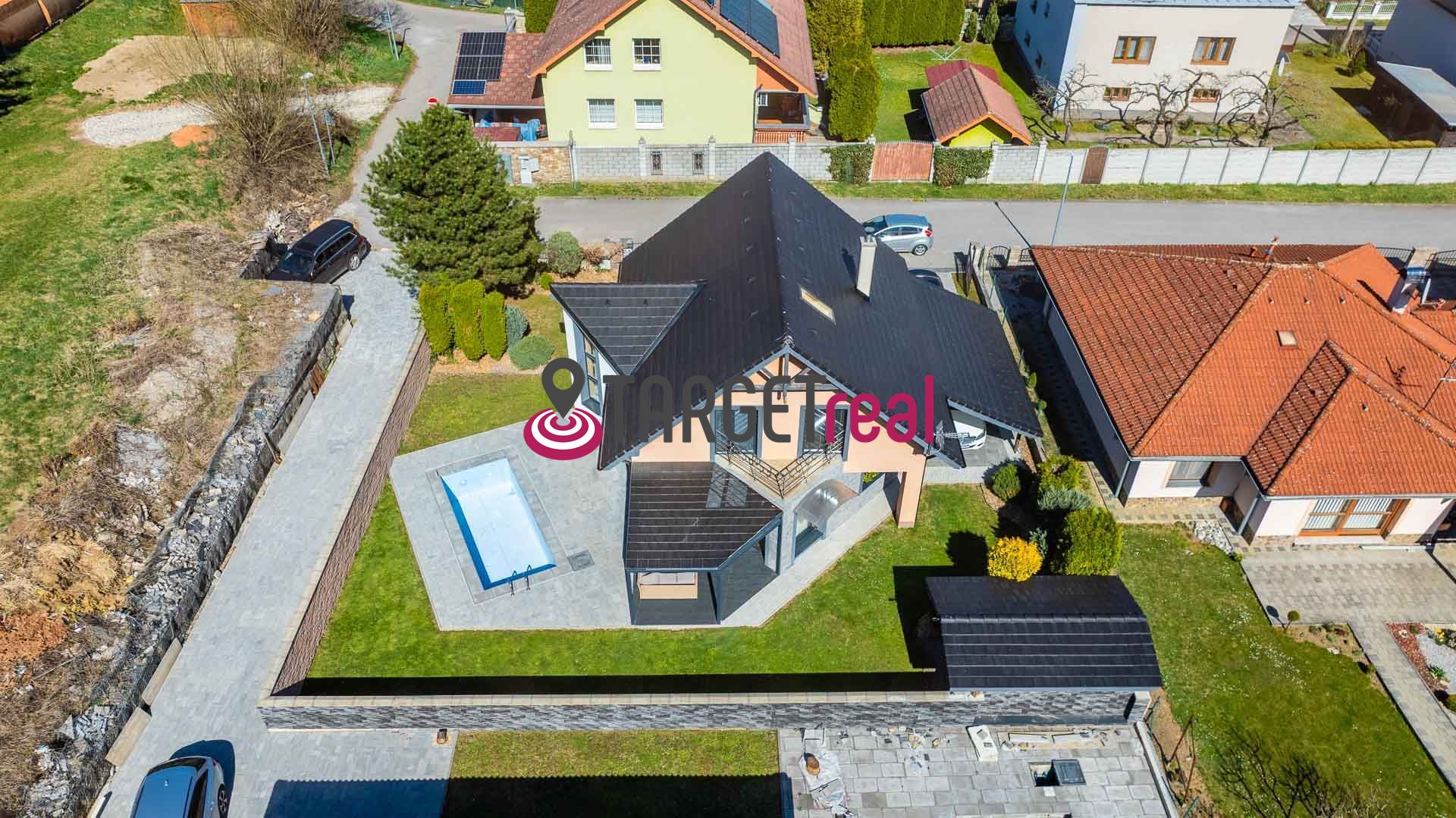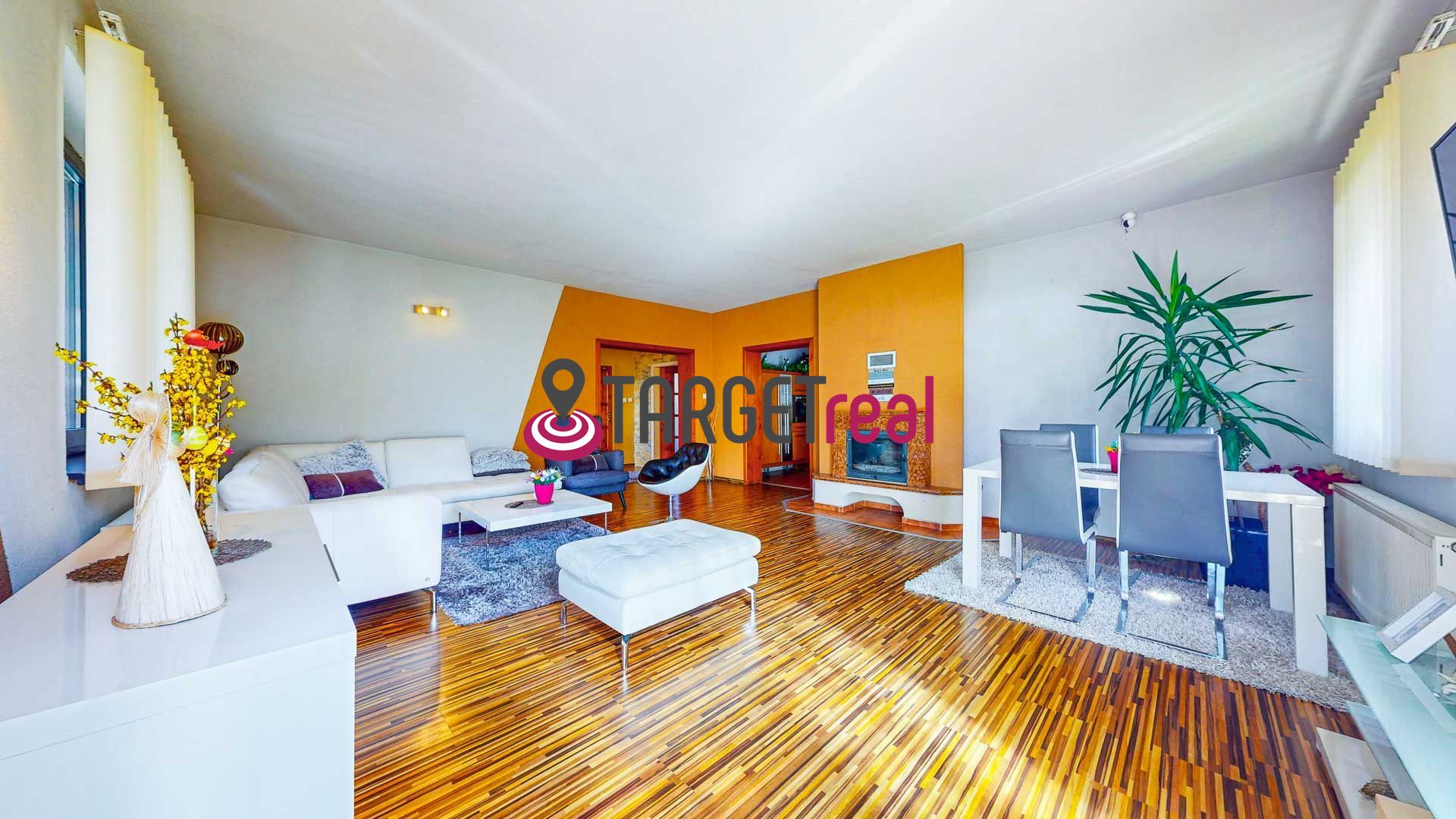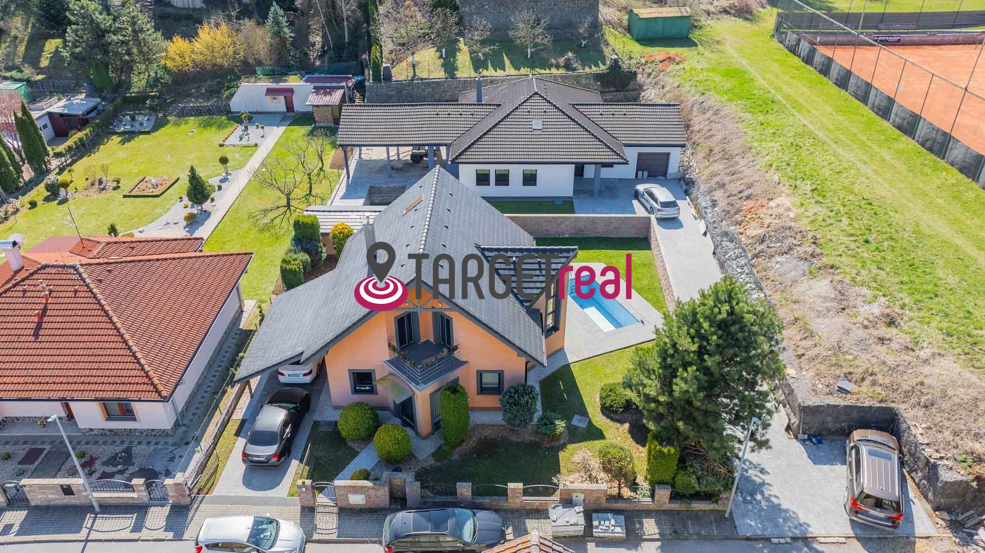Dom je navyše vybavený moderným bezpečnostným systémom a kamerovým dohľadom, ktorý zvyšuje úroveň ochrany a poskytuje majiteľom pocit istoty a bezpečia.