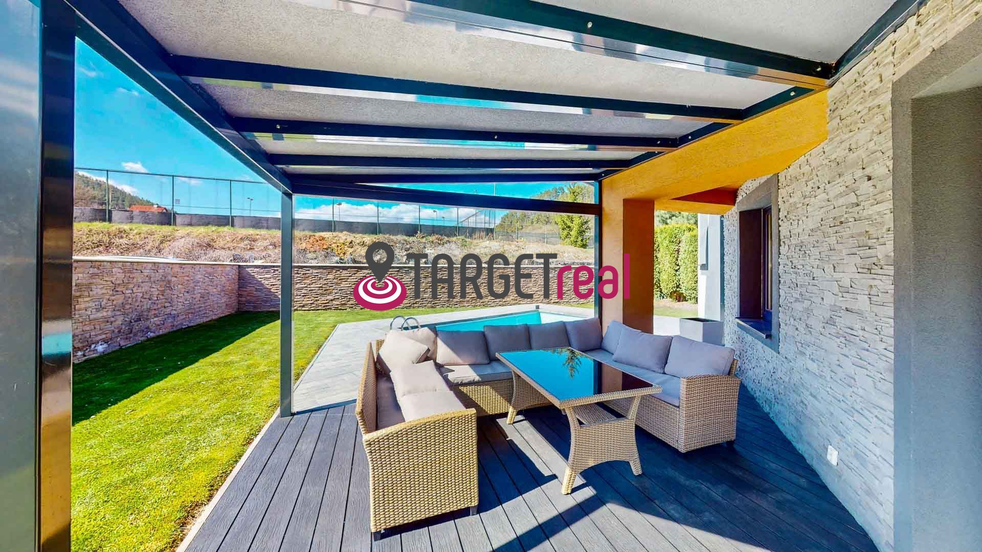 K rodinnému domu prislúcha bazén, prístrešok na auto a záhradný domček. Pozemok, na ktorom je dom postavený, je oplotený a disponuje pekne upravenou záhradou a zastrešenou terasou so sedením – ideálnym miestom na relax, rodinné posedenia či letné grilovanie.