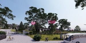 prístupová asfaltová komunikácia s pouličným osvetlením a chodníkmi