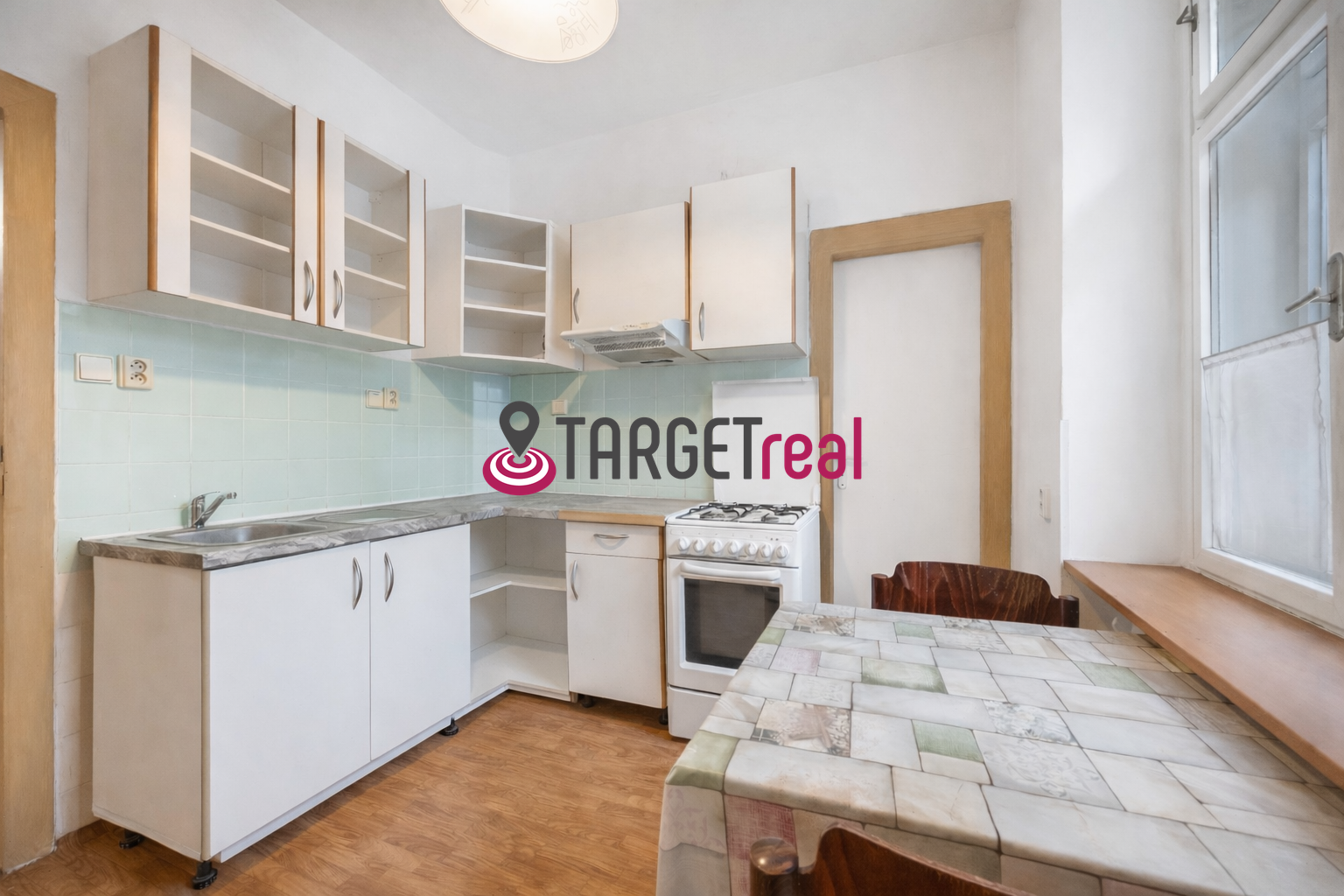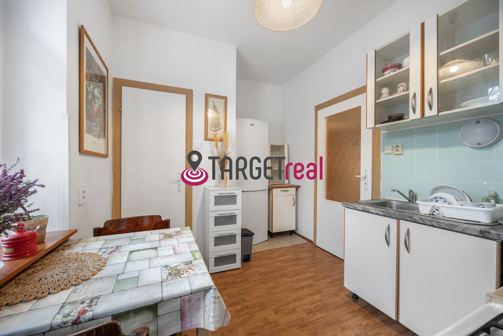 Kuchyňa s výhľadom na spoločnú záhradu je praktická s vlastnou špajzou v zádverí. Z kuchyne prejdeme do tretej izby ktorá je menšia má okno a ideálne slúži ako menšia detská izba alebo ako pracovňa.