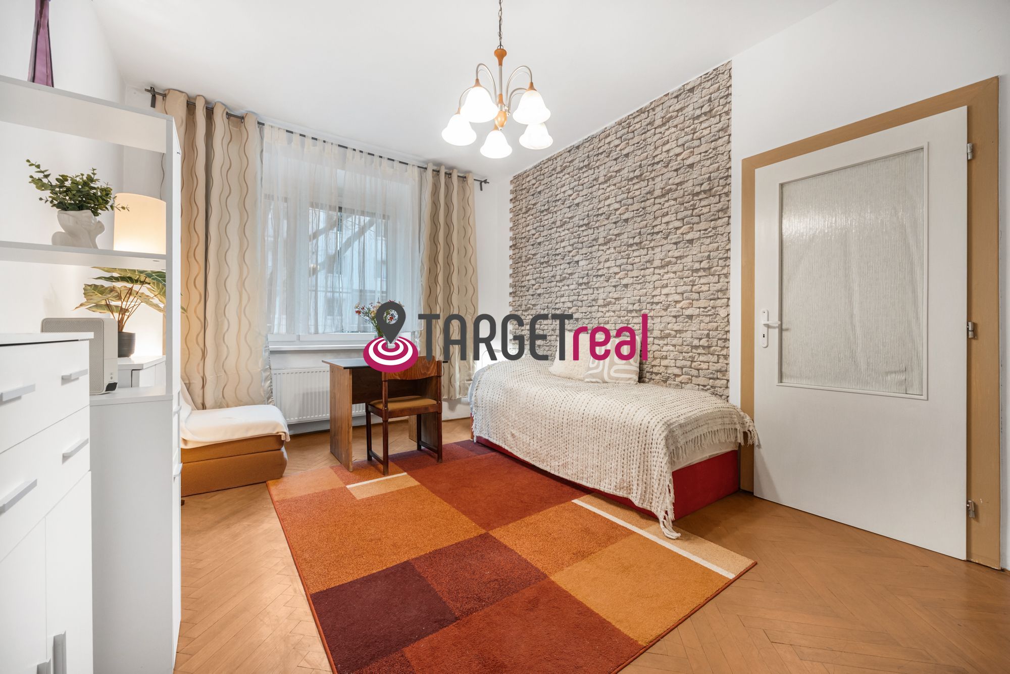 Dispozícia bytu je veľmi dobre riešená – zo vstupnej chodby sa samostatne vstupuje do všetkých miestností, čo výrazne zvyšuje komfort a funkčnosť každodenného bývania. Denná časť bytu pozostáva z priestrannej obývačky. V jadre bytu, ktoré je murované je samostatné WC a kúpeľná.